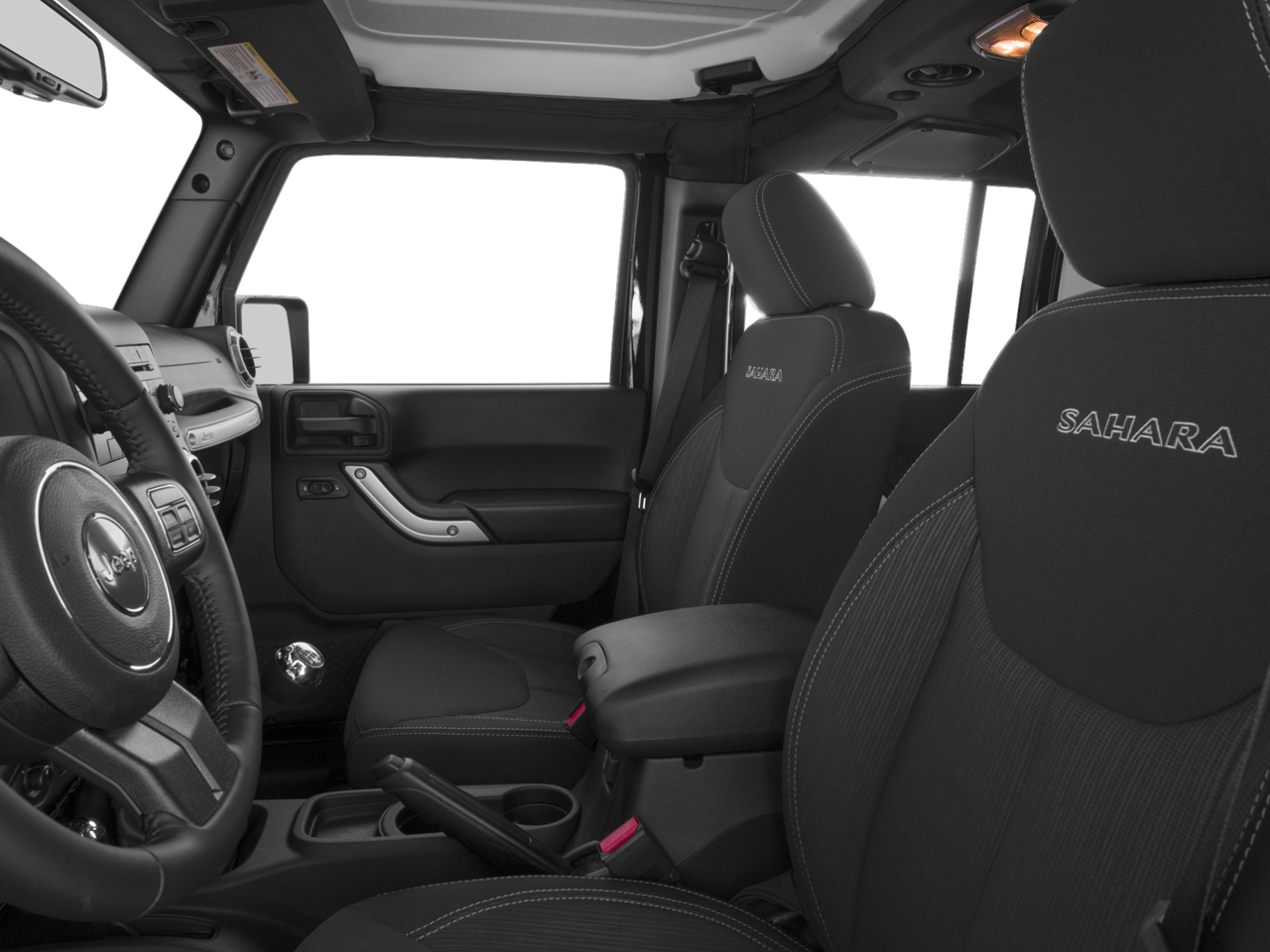 DUAL TOP GROUP Black 3-Piece Hard Top, Premium Black Sunrider Soft Top, TRANSMISSION: 5-SPEED AUTOMATIC (W5A580) Tip Start, Hill Descent Control, DARK SADDLE/BLACK, LEATHER TRIMMED BUCKET SEATS Front Seat Back Map Pockets, Driver Height Adjuster Seat, Heated Front Seats, RADIO: 430 NAV 6.5 Touchscreen Display, Remote USB Port, 40GB Hard Drive w/28GB Available, GPS Navigation, SiriusXM Travel Link, CONNECTIVITY GROUP Vehicle Information Center, Remote USB Port, Uconnect Voice Command w/Bluetooth®, Tire Pressure Monitoring Display, SUPPLEMENTAL FRONT SEAT SIDE AIR BAGS, ENGINE: 3.6L V6 24V VVT (STD). Jeep Sahara with Bright White Clearcoat exterior and Dark Saddle/Black interior features a V6 Cylinder Engine with 285 HP at 6400 RPM*. Trade, Non-Smoker vehicle