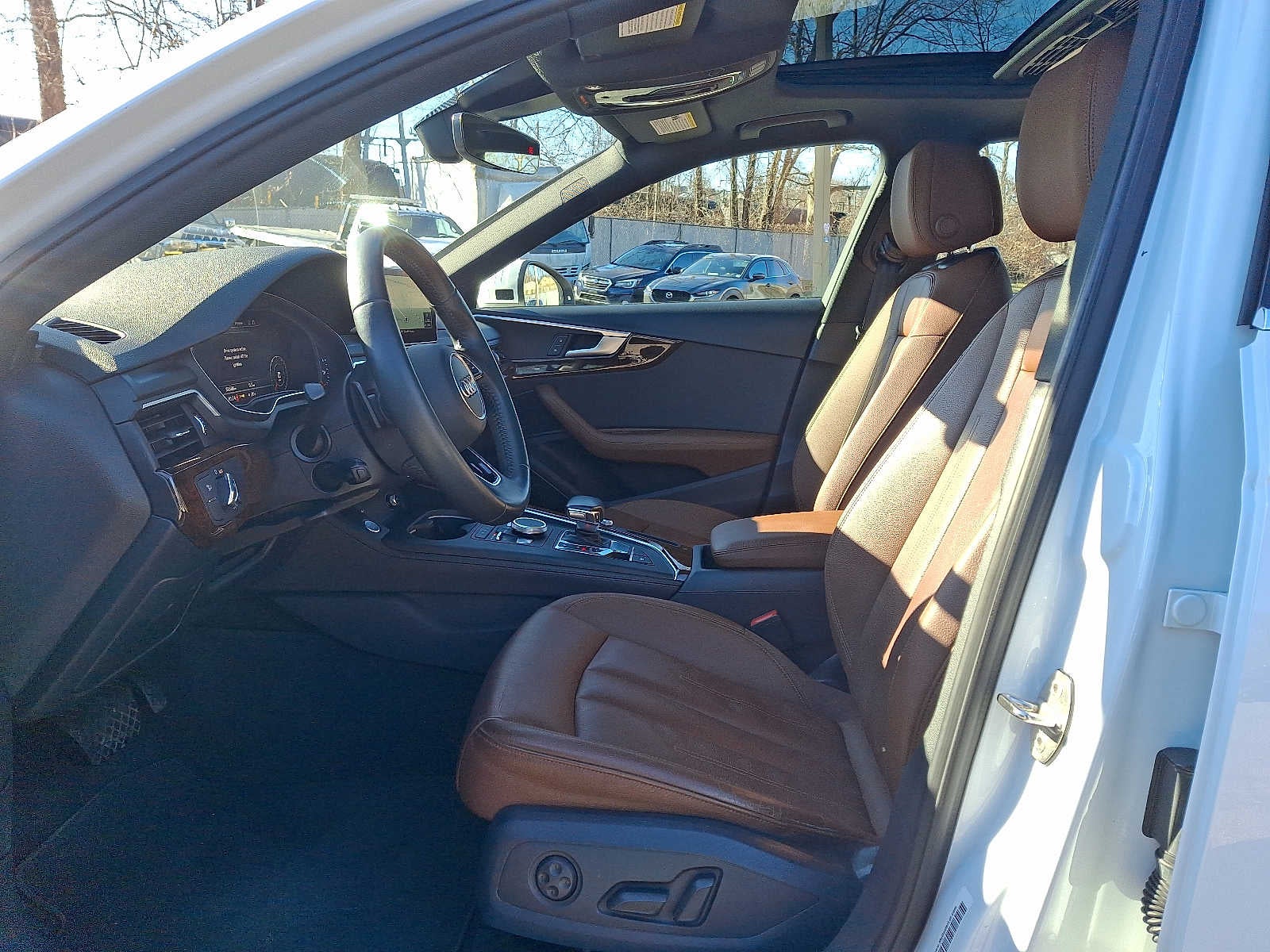 PREMIUM PLUS PACKAGE: Audi phone box, Leatherette Covered Center Console & Door Armrests, Parking System Plus, 4 front and 4 rear acoustic sensors, Audi MMI Navigation Plus w/MMI Touch, 8.3 MMI center screen and USB charge ports for rear seats, Audi Virtual Cockpit, Audi Connect PRIME & PLUS, Power Folding Exterior Mirrors, Audi Pre Sense Rear, Memory for Drivers Seat, Alarm System w/Motion Sensor, motion sensor, SiriusXM Satellite Radio, Audi Side Assist w/Rear Cross Traffic Assist, Audi Advanced Key, keyless engine start/stop and entry - doors trunk, LED Headlights, BANG & OLUFSEN SOUND SYSTEM W/3D SOUND, COLD WEATHER PACKAGE: All-Weather Floor Mats, Heated Steering Wheel, shift paddles, 3-step. Audi Premium Plus with Glacier White Metallic exterior and Nougat Brown/Black interior features a 4 Cylinder Engine with 248 HP at 5000 RPM*. Trade, Non-Smoker vehicle