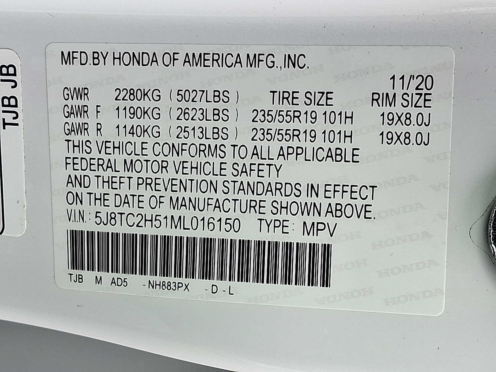 - Front Tire Size: P235/55HR19