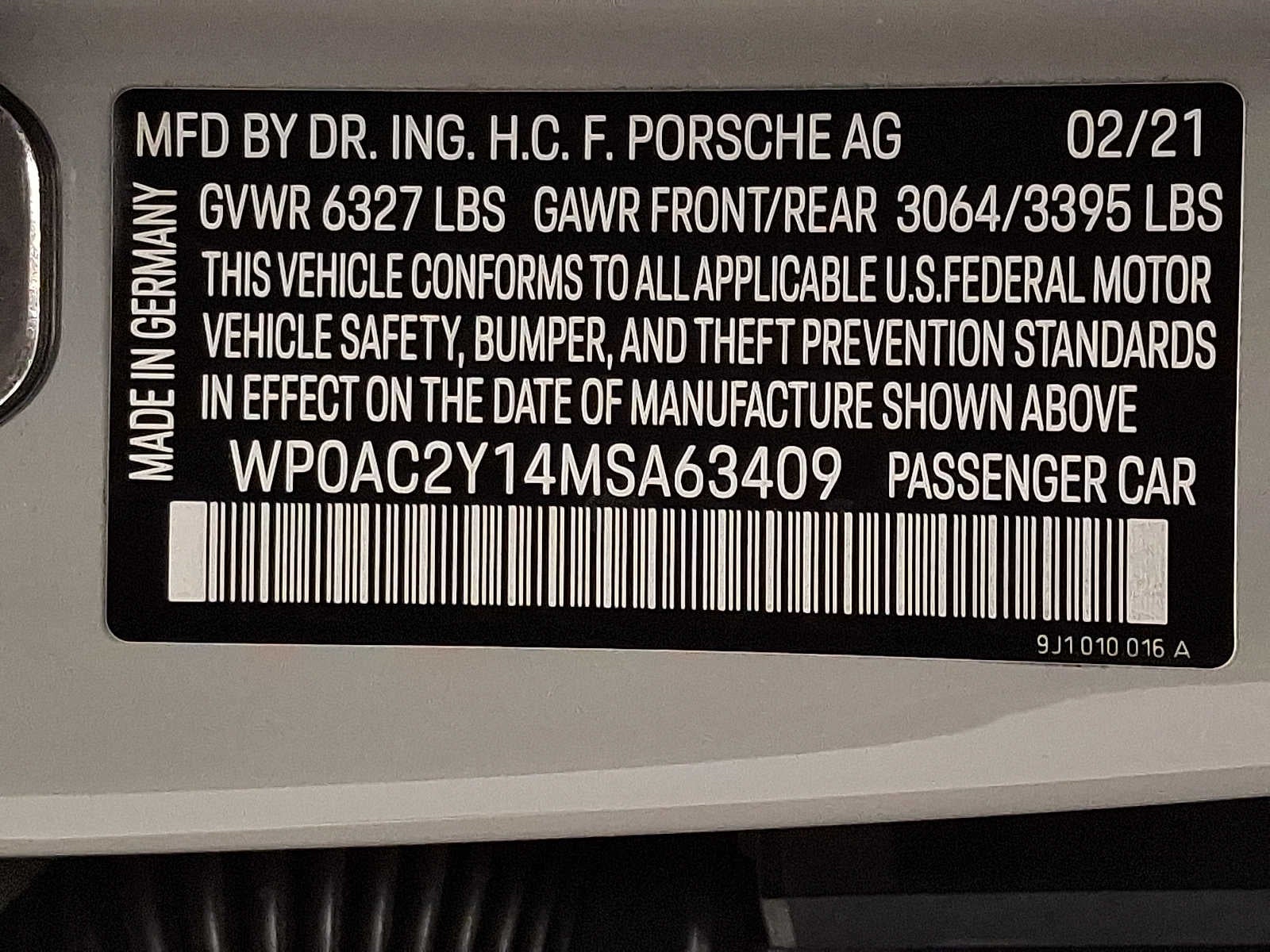 - Vehicle Name: Porsche Taycan