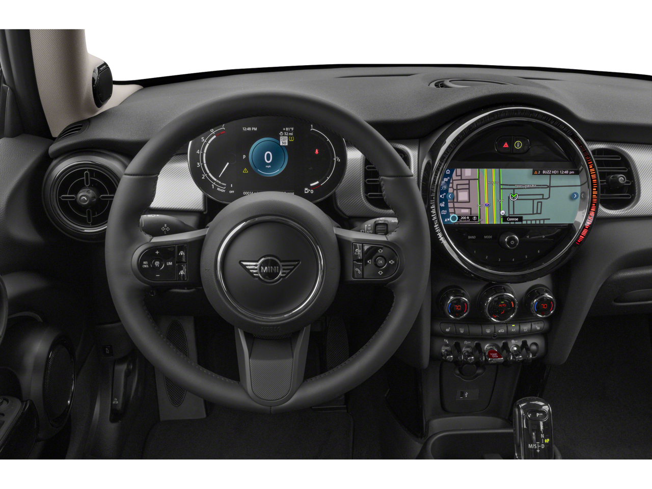SIGNATURE TRIM Transmission: 7-Speed DCT, Aluminum Interior Surface, Storage Package, MINI Navigation, Advanced Real-Time Traffic Information, Heated Front Seats, Auto-Dimming Rearview Mirror, Power-Folding Mirrors, Panoramic Moonroof, Wheels: 16 x 6.5 Revolite Spoke Spectre Grey, Style 001, Tires: 195/55R16. MINI Cooper with Nanuq White Metallic exterior and Carbon Black interior features a 3 Cylinder Engine with 134 HP at 4500 RPM*.